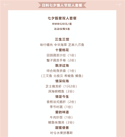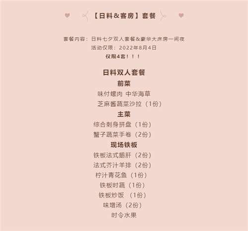 8月4日七夕节正常开餐(请提前1天预定座位)