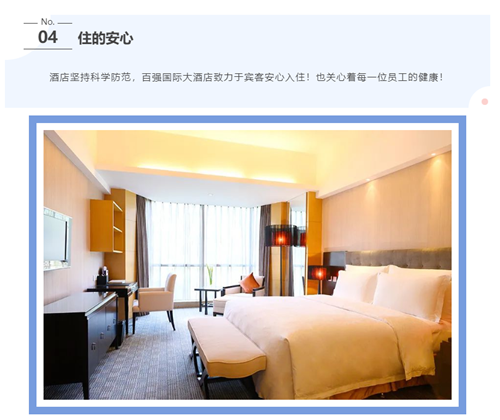 百强国际大酒店积极配合疫情防控工作,全力确保宾客及员工的健康安全。