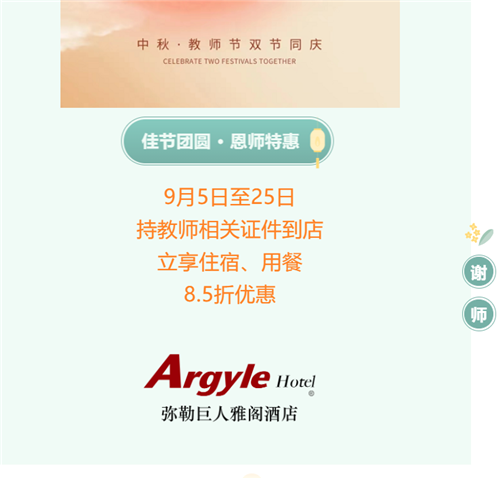 中秋教师双节至,为广大宾客提供优惠礼遇,欢迎下榻。