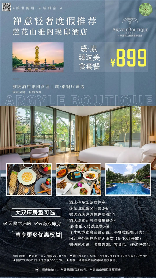 广州莲花山雅阁璞邸酒店(雅阁酒店集团旗下成员酒店)超适合你!