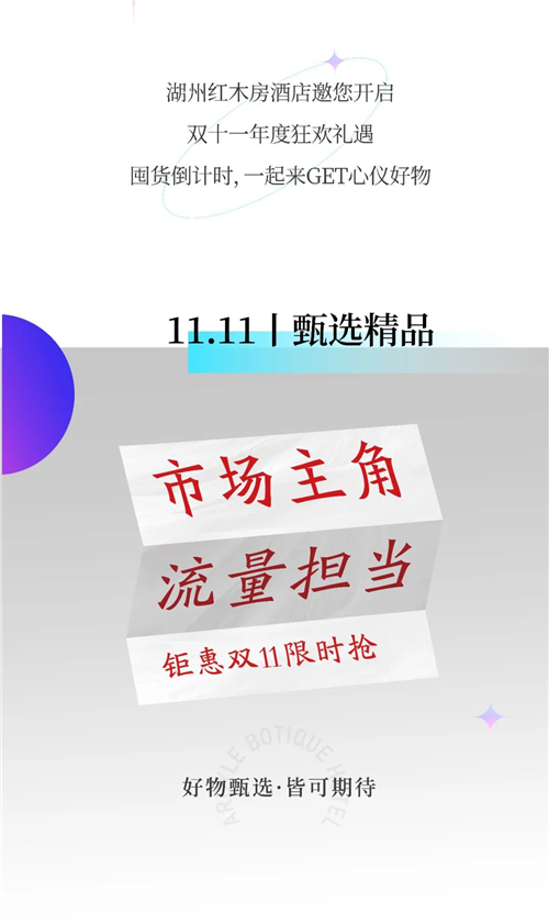 湖州红木房雅阁璞邸酒店(雅阁酒店集团旗下成员酒店)双11活动大促献礼