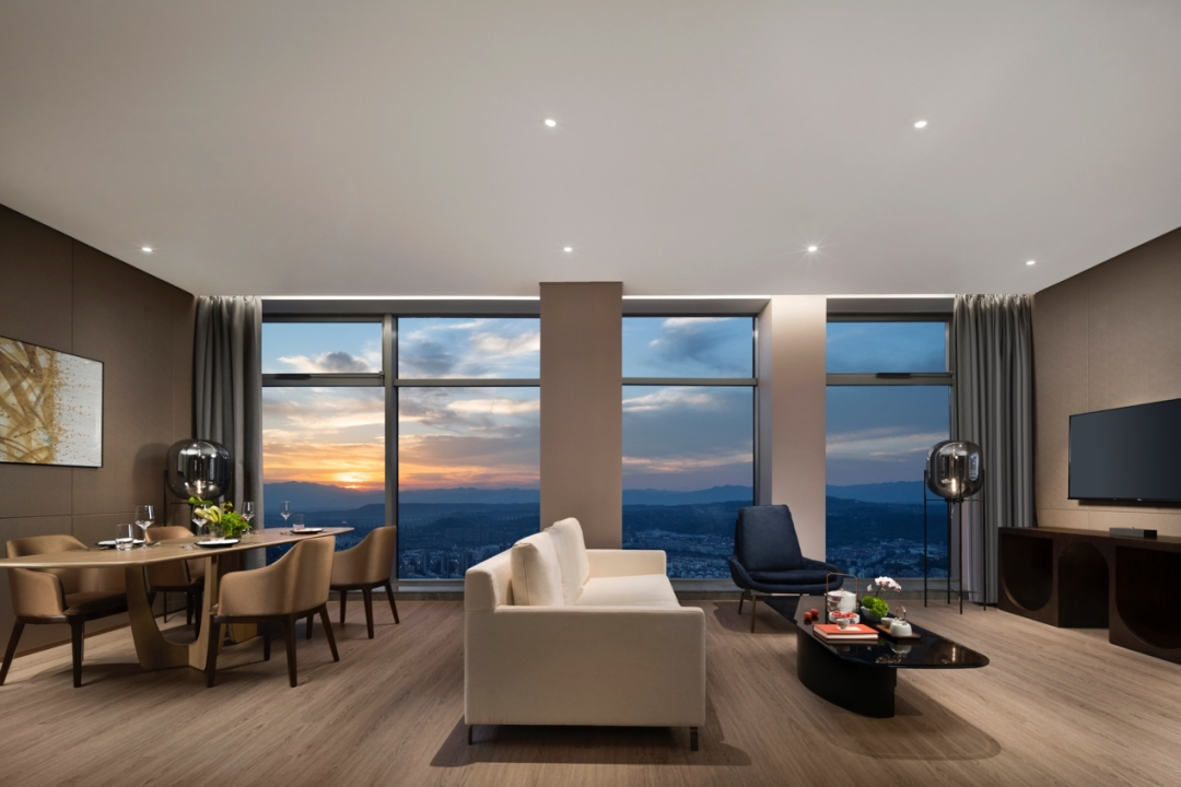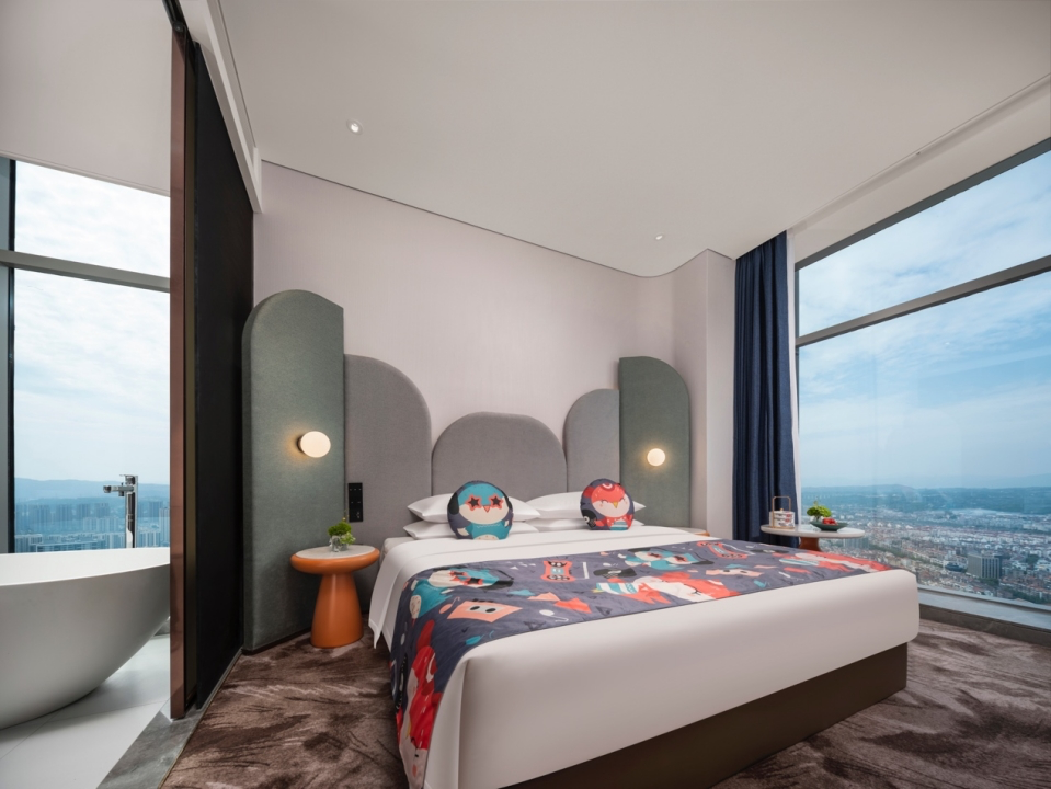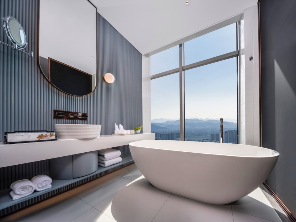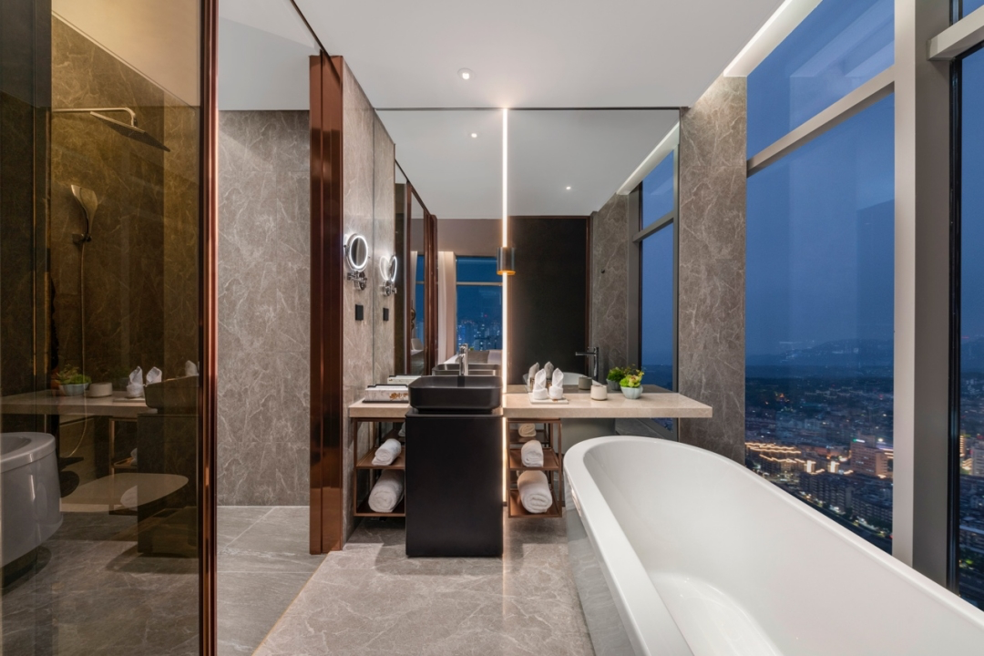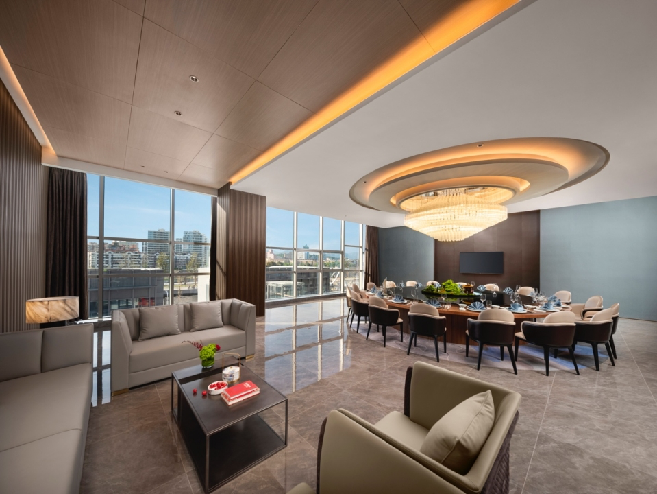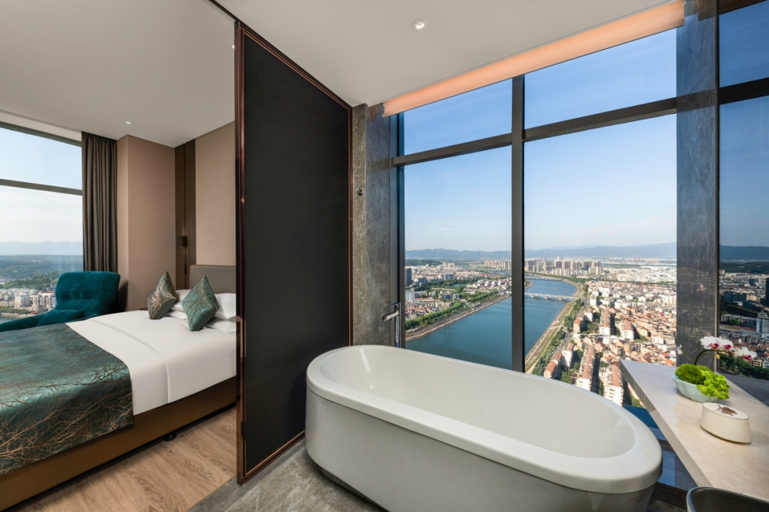 酒店拥有42-260平方米不等的各类豪华客房,整体装修风格自然优雅,创造精致简约的奢华质感,带给宾客卓尔不凡的商旅体验,客房皆分布于地标22层之上,温州繁华风景与城市天际线都只在抬眸一瞬。