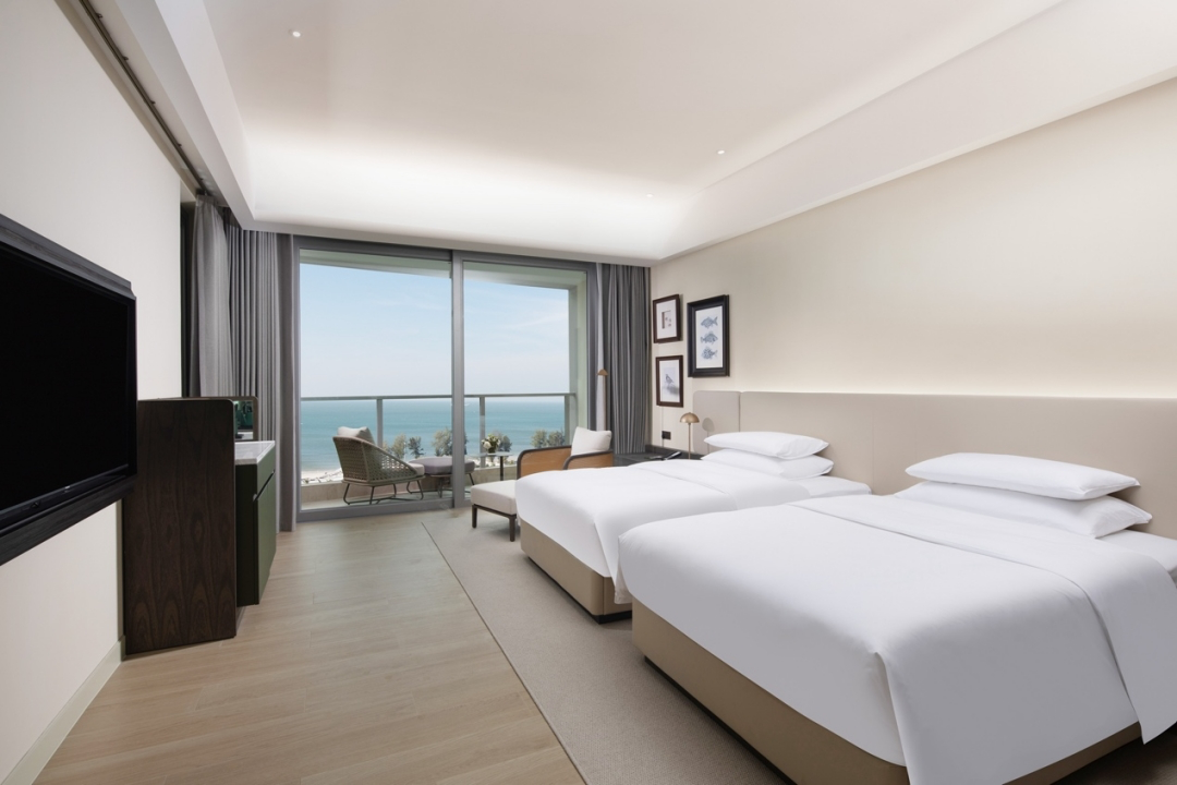 酒店拥有288间全海景阳台房,均配有独立观景大阳台,奢享银滩风光与海滩公园全景。