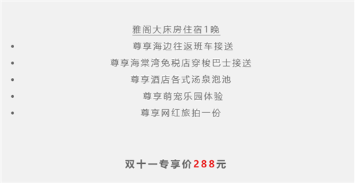 双11“价”到,三亚亚龙湾雅阁温泉酒店(雅阁酒店集团旗下成员酒店)汤泉泡池心动价位,心动不如行动,一起来感受这个双11购物狂欢节——酒店专场。
