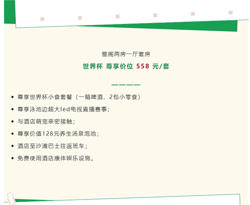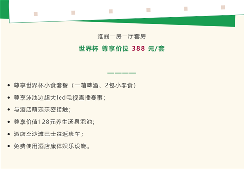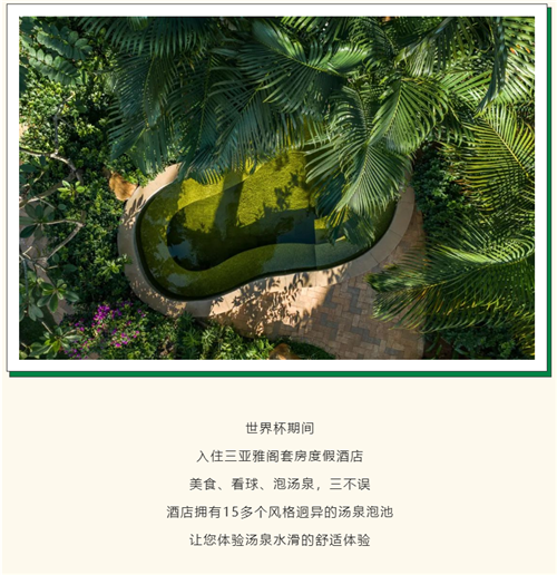 世界杯开幕在即,三亚亚龙湾雅阁温泉度假酒店(雅阁酒店集团旗下成员酒店)