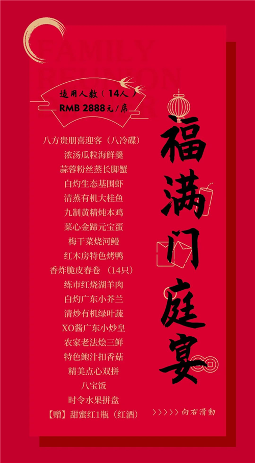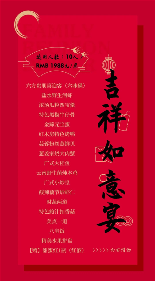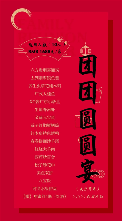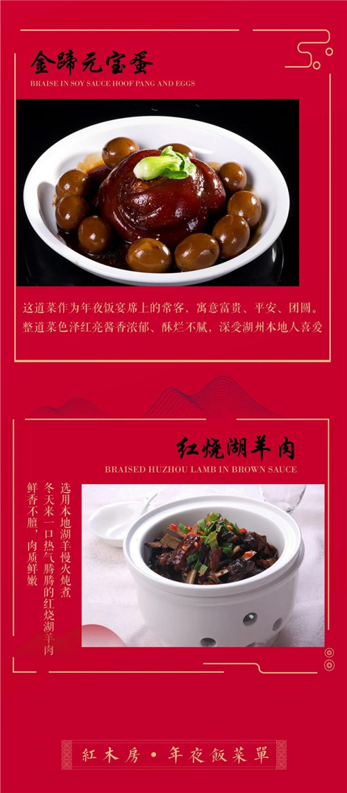 寻味年夜饭,喜气洋洋迎新年,湖州红木房雅阁璞邸酒店(雅阁酒店集团旗下成员酒店)年夜饭火热预定中。