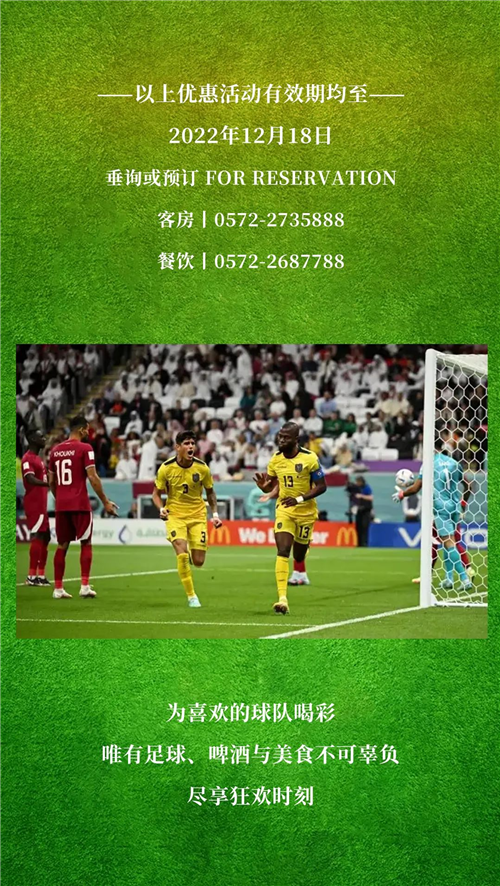 2022年卡塔尔世界杯正式开启,四年一届,约上三五好友来浙江湖州红木房雅阁璞邸酒店(雅阁酒店集团旗下成员酒店)一起相聚喝酒看球,分享激动人心的时刻吧。