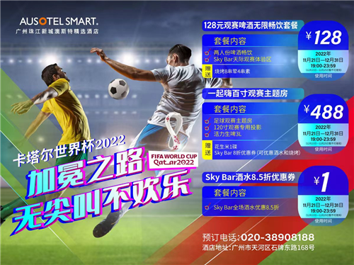 2022年卡塔尔世界杯正式开启了,一起相约广州珠江新城澳斯特精选酒店(雅阁酒店集团旗下成员酒店),约上三五好友,尽情享受这场激情热血的足球赛事。