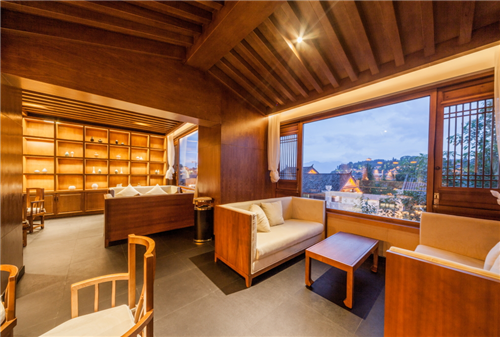 酒店建筑面积约5800平米,分为接待区、客房、餐饮、休闲、会议五个功能区域。接待区前厅服务中心,使用面积约180㎡,满足住店客人包含入住、离店的手续办理,并设置服务中心功能,提供接待、收银、总机、预订、咨询、行李、交通等服务项目;客房区有各类精美客房:精品大床/双床房、豪华大床房、精品(大床/双床)套房、豪华(大床)套房,满足客户享受精品生活的旅行需求;酒店餐厅以优质服务,满足客人享受健康特色、精品的美食;休闲区主要为庭院区域、二楼康体中心、三楼观景休闲茶吧,合计使用面积约350平米,满足住店客人的休闲体验需求;会议区酒店二楼多功能会议室玉水厅面积为94平米,可容纳35人;三楼多功能会议室金沙厅面积为108平米,可容纳45人。针对小型高端会议,会议摆台灵活多样,可呈现董事会型、课桌式、剧院式等台型。