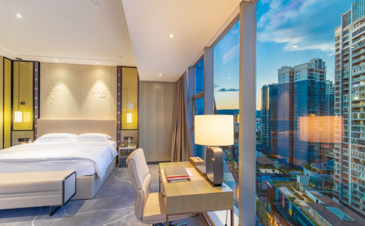 酒店楼体为全景玻璃幕墙,所有房间均能纵览城市美景。作为弥勒一家集商务、休闲度假为一体的国际品牌星级酒店,拥有各式客房共两百余间,包括三十余间套房、亲子楼层和行政楼层。