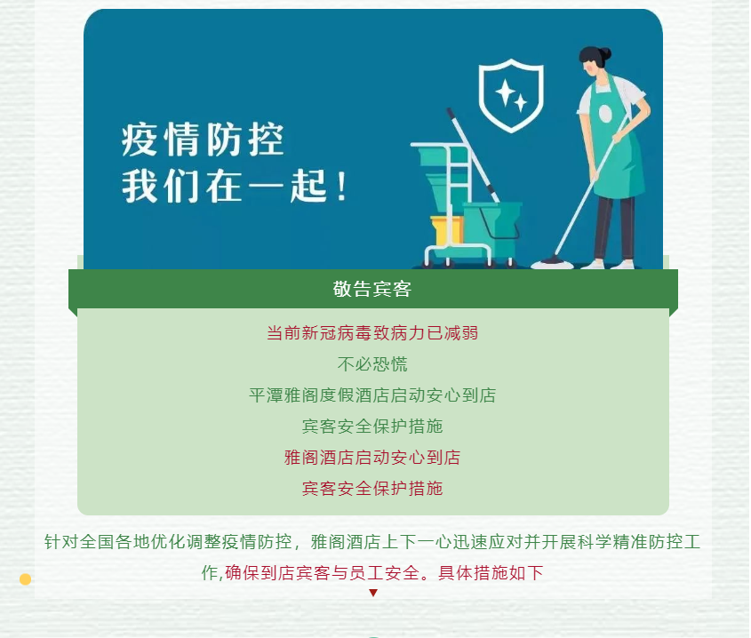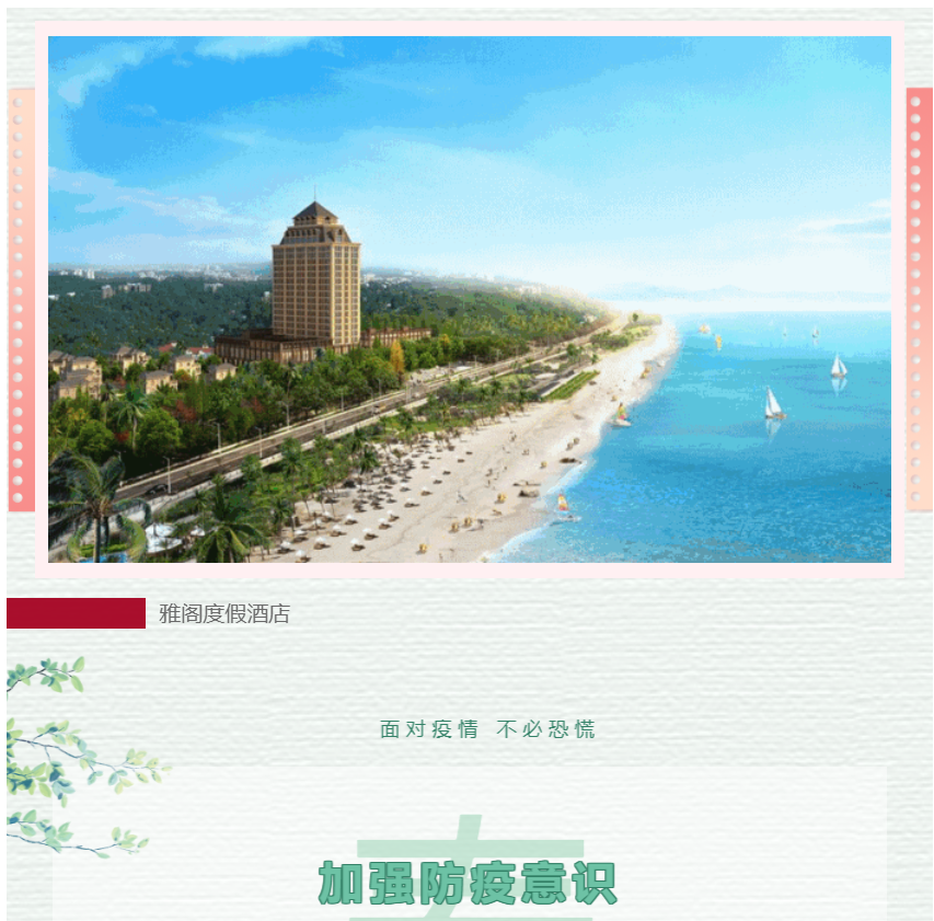 福建平潭金永雅阁度假酒店(雅阁酒店集团旗下成员酒店) 启动安心到店,宾客安全保护措施 虽然今