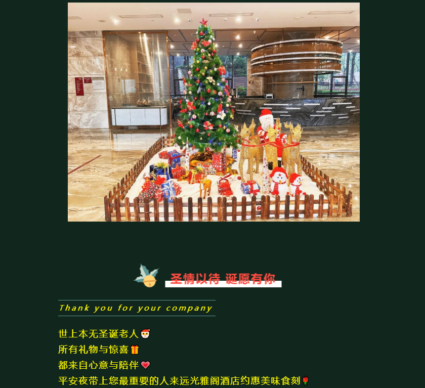 圣诞节,来广东清远远光雅阁酒店(雅阁酒店集团旗下成员酒店)约惠美味食刻。