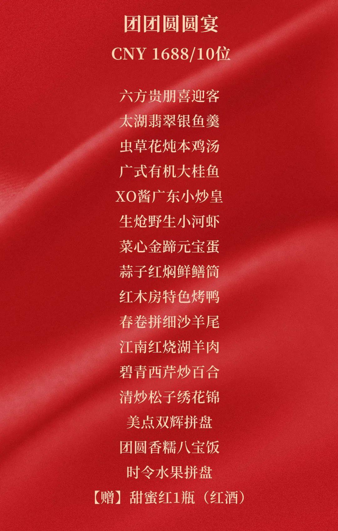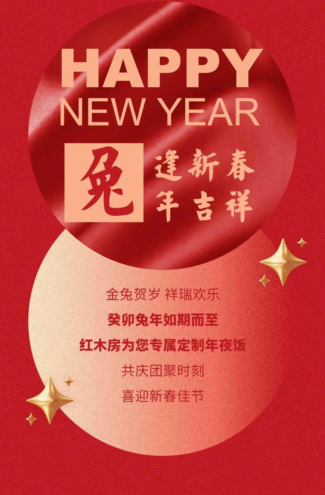 以珍馐美肴开启新年团聚时刻,湖州红木房雅阁璞邸酒店(雅阁酒店集团旗下成员酒店)祝您新年鸿运当头,金兔吉祥。