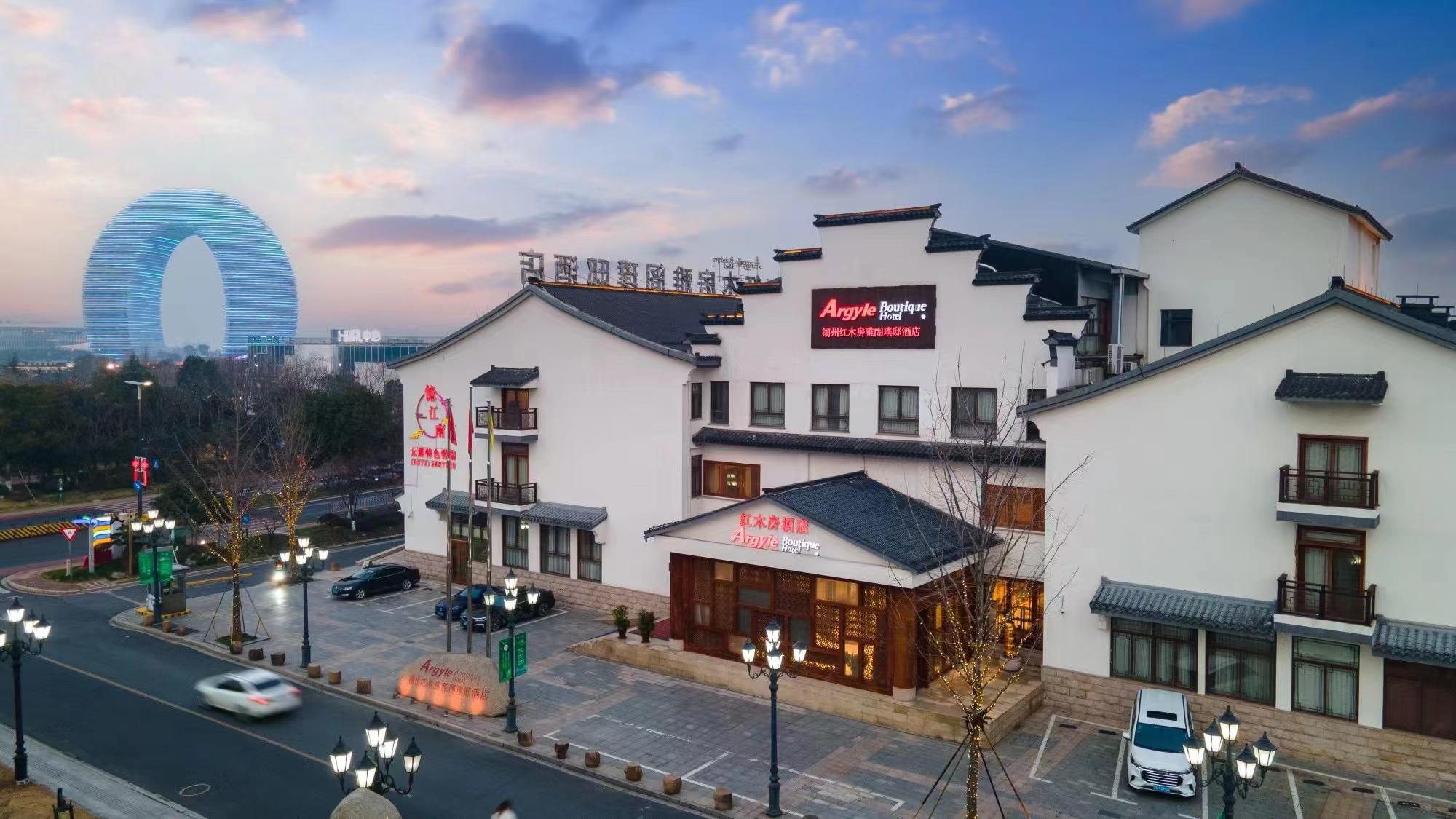 湖州红木房雅阁璞邸酒店(雅阁酒店集团旗下成员酒店)以红木为主题的高端奢华度假酒店,位于旅游度假区太湖南畔,毗邻上海、苏州和杭州,地理位置佳,交通便捷。酒店设计风格融合了当代徽派建筑的独特风格及江南的古典之美。所有客房采用红木(缅甸花梨)纯手工打造出中式传统风格,结合现代设施,既有江南水乡的韵味,又不失现代生活的舒适享受。