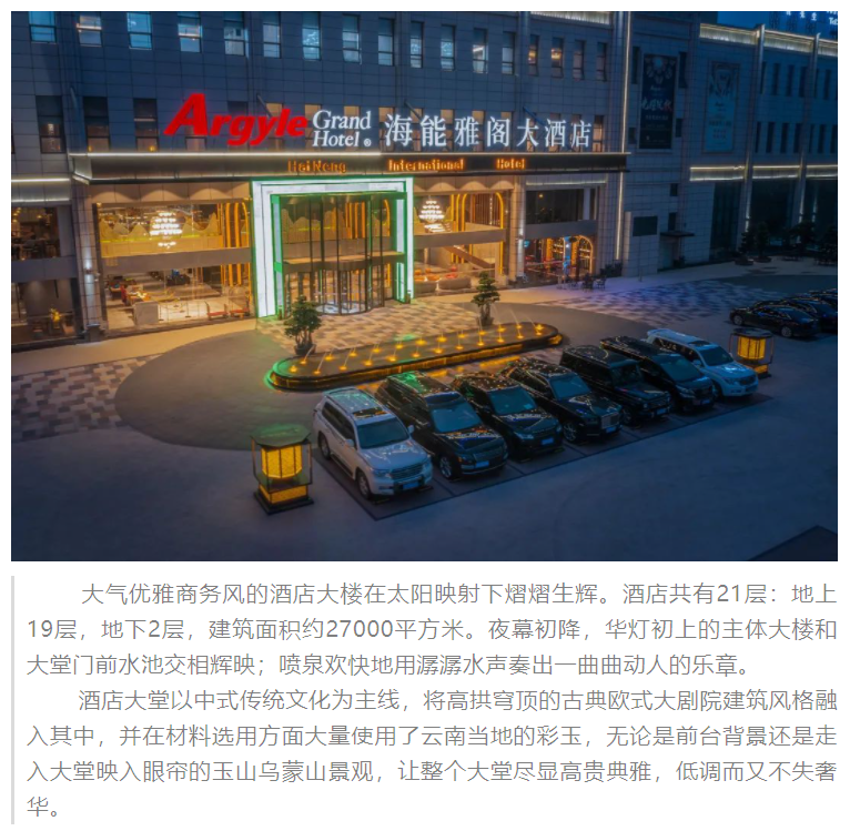 云南镇雄海能雅阁大酒店是由海能文旅斥资3.5亿重金倾力打造。