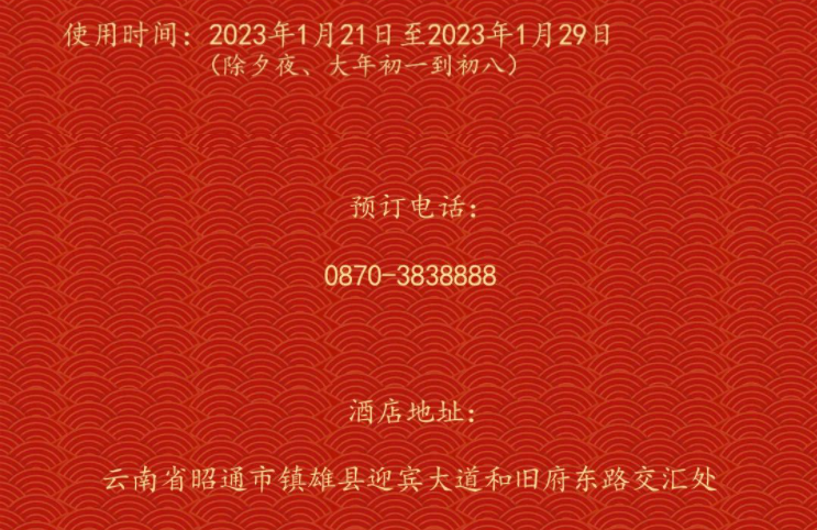 兔年吉祥,云南镇雄海能雅阁大酒店酒店(雅阁酒店集团旗下成员酒店)年夜饭欢迎您来品尝预订。