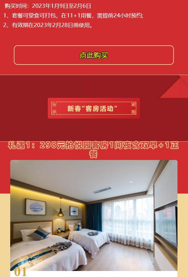 为你送上新年礼,推出2023新春“餐饮活动”和客房活动,双重好礼!