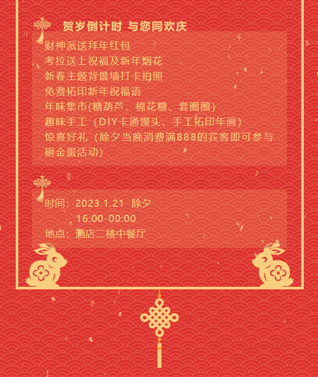 酒店准备了丰富的“玩意儿”,邀请您与我们一同玩转兔年。