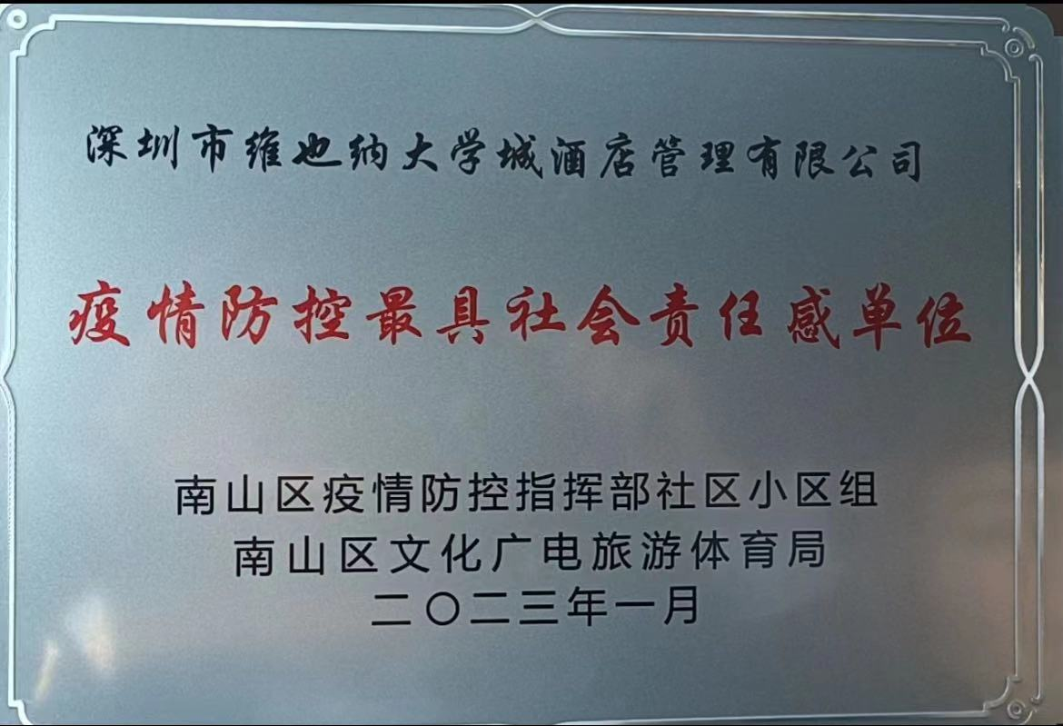 图片 2.png 不仅仅是维也纳酒店(深圳沙湾店),深圳市维也纳大学城酒店也被南山区疫情防控指挥部社区小区组及南山区文化光电旅游体育局授予“疫情防守最具社会责任感单位”,维也纳酒店深圳山水田园店、维也纳酒店深圳宝安前进路店都收获殊荣,或是一份荣誉证书,或是一封真挚的感谢信,都是对于酒店工作人员的最好褒奖。正是他们的坚守与付出,汇聚起一支坚强的“深圳力量”。