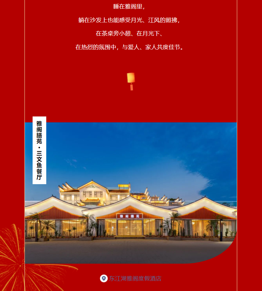 元宵节带上家人在湖南郴州东江湖雅阁度假酒店(雅阁酒店集团旗下成员酒店),阖家团圆,喜乐庆元宵~