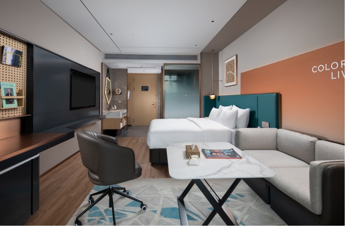 潮漫酒店3.0产品将“Colorful Living,出行不止一面”的初心践行到底,在2.0 产品“品质快生活空间”的基础,强化了共享、社交、办公三大属性,打破空间界限。同时,3.0产品也通过模块化设计和家具装配化等方式,在造价和工期等上,实现成本维稳,品质升级,真正实现产品高性价比!