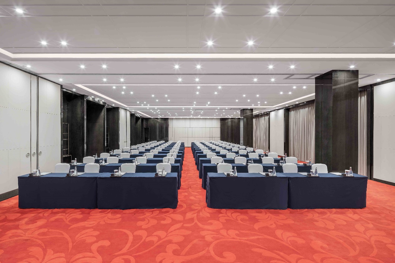 海口亚特(国际)会议中心酒店,坐落于海南省海口市秀英区长滨一路7号,地处核心政务群中央。酒店采用中式古典与现代相结合的设计风格,大堂中央青峦叠嶂的壁画彰显着国家“一带一路”政策的波澜壮阔。酒店设有300间五星标准客房及套房,配备4个风格各异的餐厅,近2000㎡的宴会场地,以及配套齐全的会议设施,满足风格多样的商务会议与宴会场景需求。