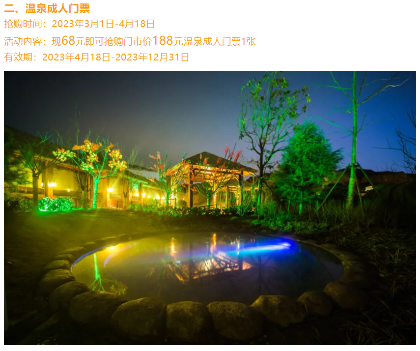 温泉经营日人流数量500人左右,夏季水世界运营时,日均人流数量1500人左右。酒店集温泉、餐饮、客房、会议、婚宴为一体的综合型度假酒店。适合家庭聚会,商务招待,公司年会等。