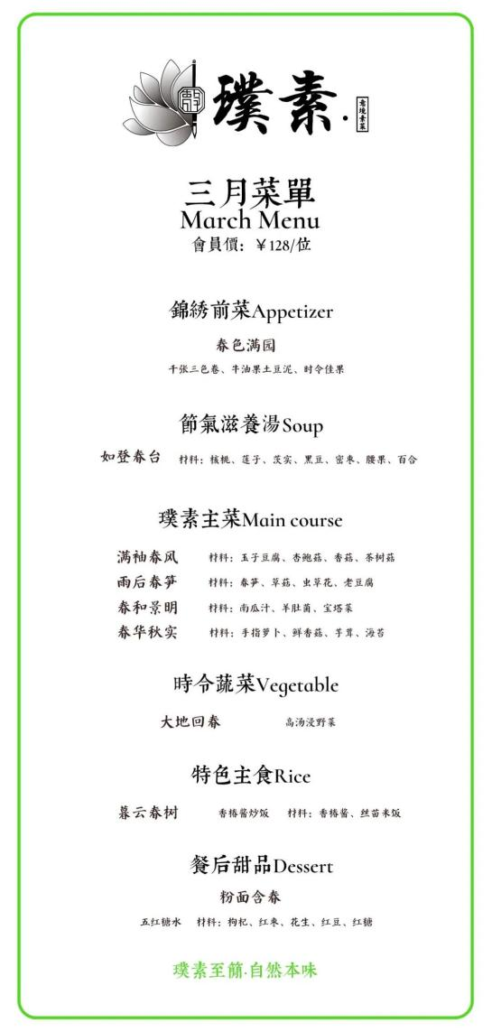 春夏万物生长,广州莲花山雅阁璞邸酒店(雅阁酒店集团旗下成员酒店)璞素菜单上新。