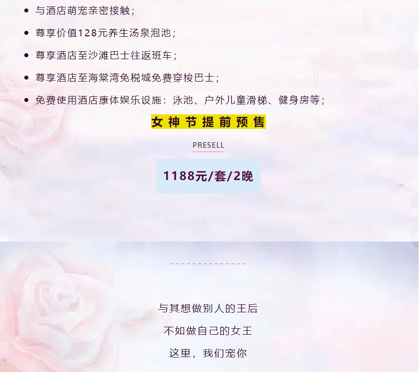三亚亚龙湾雅阁温泉度假酒店(雅阁酒店集团旗下成员酒店)女神节活动