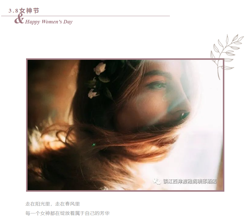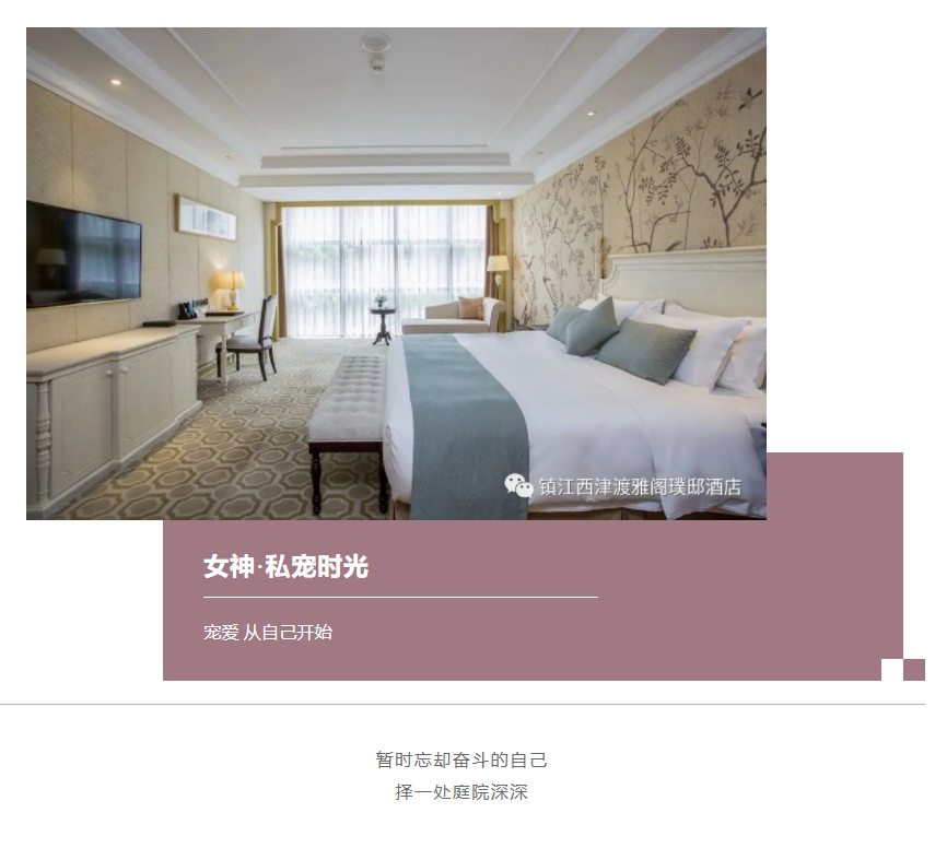 江苏镇江西津渡雅阁璞邸酒店(雅阁酒店集团旗下成员酒店)女神节活动预告