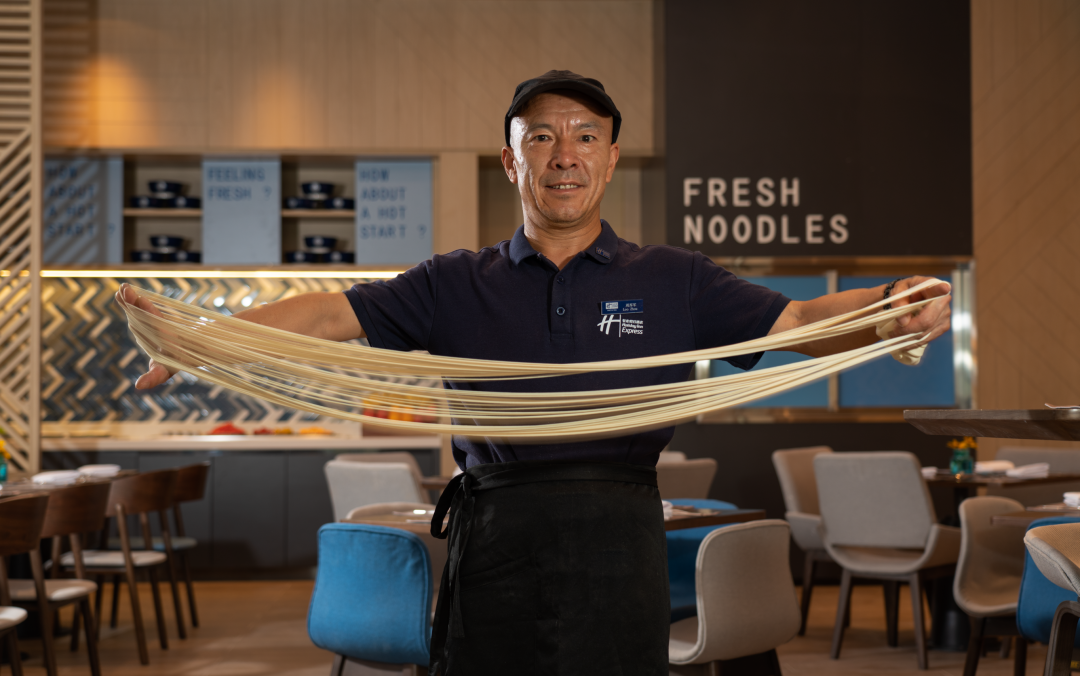 兰州新区智选假日酒店餐饮区域,厨师精心制作当地手工拉面