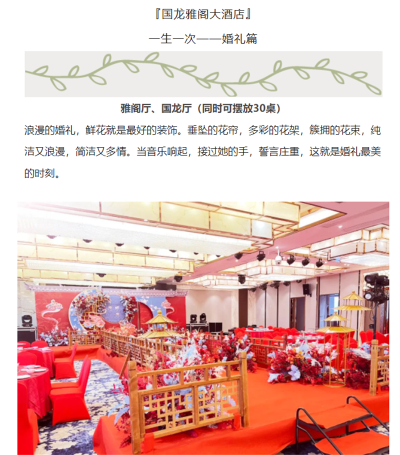 贵州兴义国龙雅阁大酒店(雅阁酒店集团旗下成员酒店)开启浪漫婚礼季。