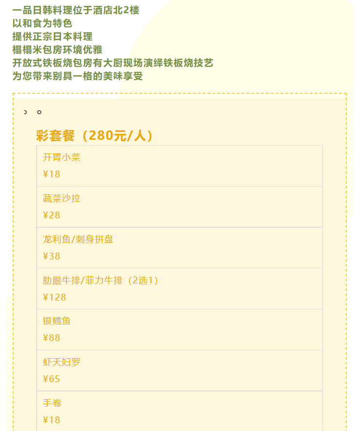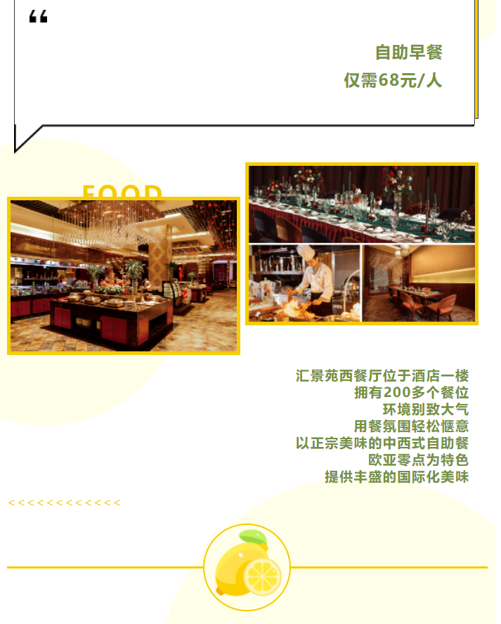 用餐氛围轻松惬意,以正宗美味的中西式自助餐、欧亚零点为特色,提供丰盛的国际化美味,欢迎来体验品尝。