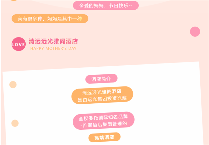 以爱之名,感恩母亲节!清远远光雅阁酒店(雅阁酒店集团旗下成员酒店)祝天下母亲节日快乐!