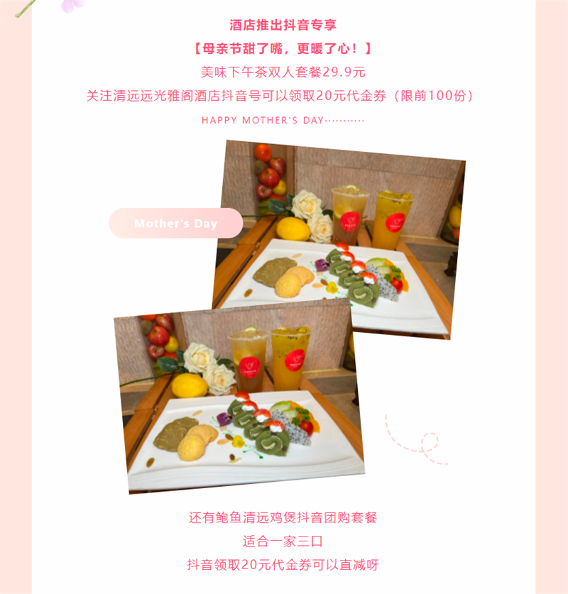 母亲节甜了嘴,更暖了心,清远远光雅阁酒店(雅阁酒店集团旗下成员酒店)与您共庆母亲节。