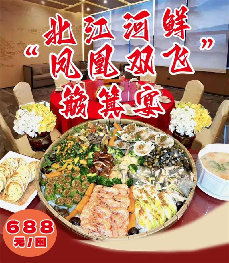 现正推出正宗北江河鲜双飞凤凰簸萁特色宴