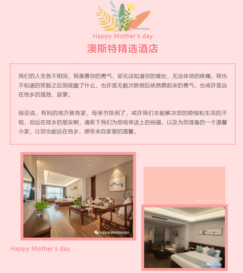 母亲节,欢迎下榻元谋远景澳斯特精选酒店(雅阁酒店集团旗下成员酒店),共庆节日。