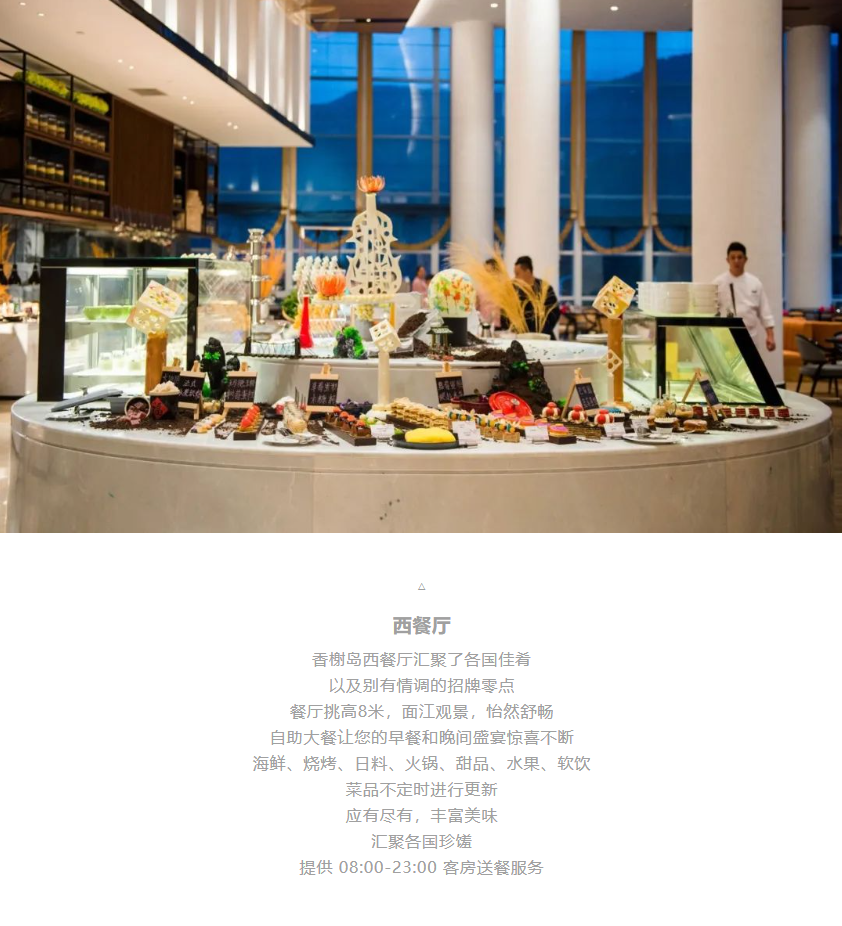 酒店矗立于青山绿水之间,眺望江景如同置身仙境,诗意盎然,令人心醉神往。