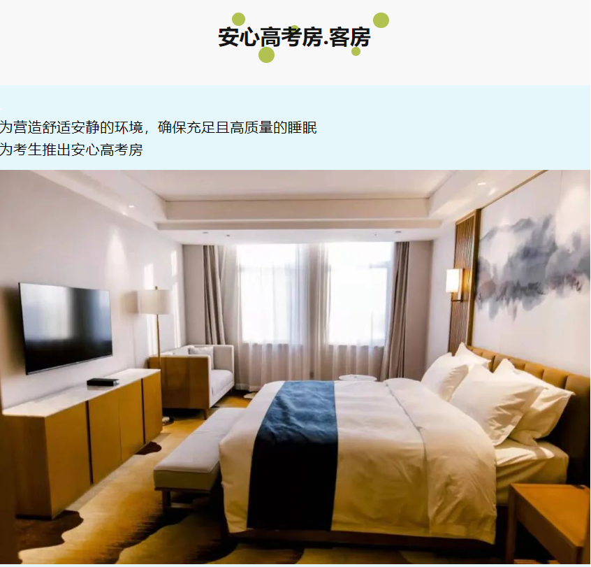 为营造舒适安静的环境,确保充足且高质量的睡眠,为考生推出安心高考房