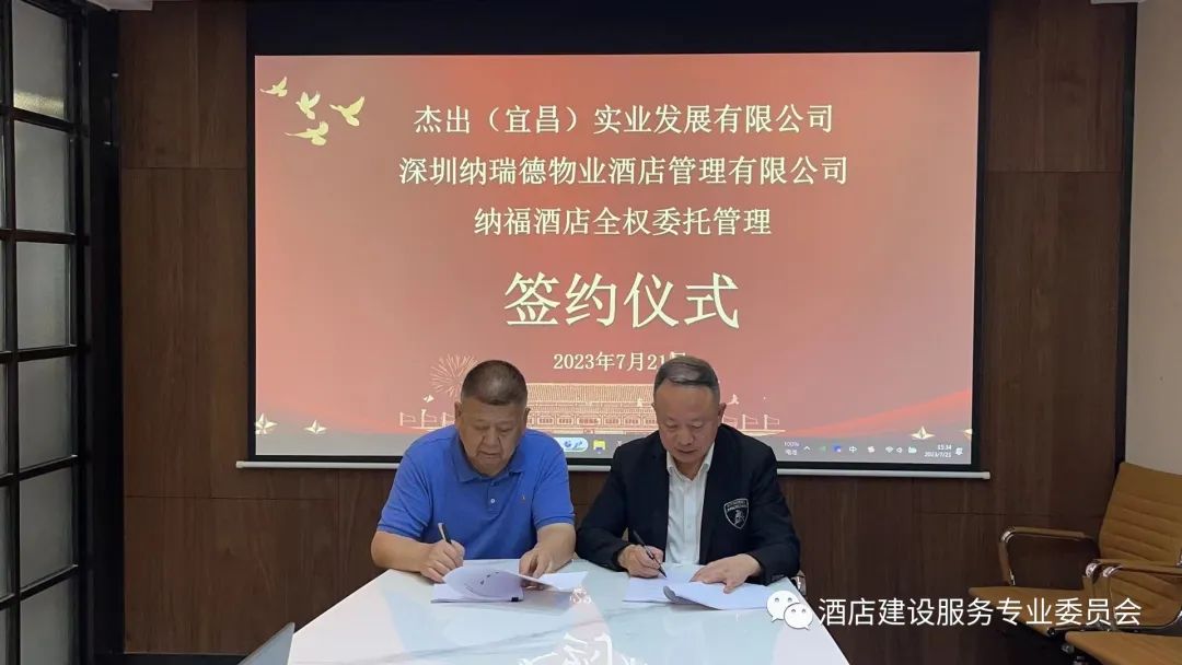 热烈祝贺酒委执行副主席,深圳纳瑞德物业管理有限公司林健董事长成功签约湖北宜昌纳福酒店