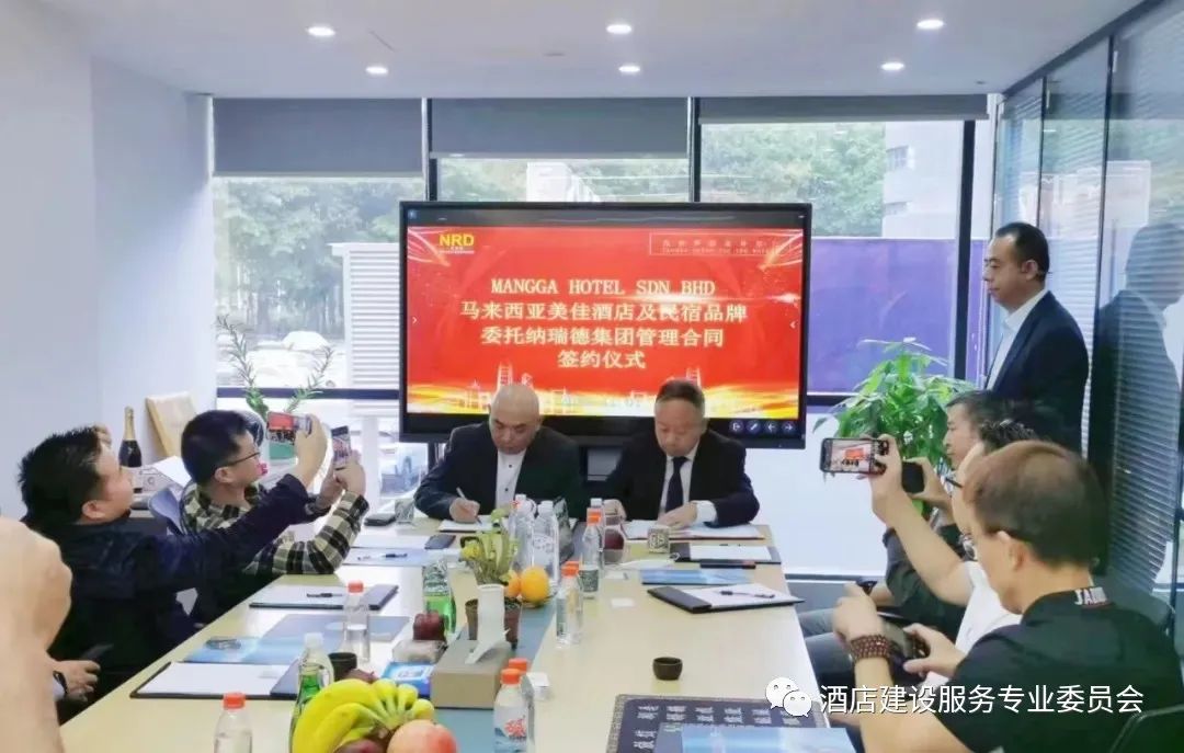 2022年11月1日下午两点,深圳纳瑞德物业酒店管理有限公司与马来西亚MANGGA HOTEL SDN BHD签约仪式在纳瑞德集团深圳总部举行!纳瑞德集团董事长林健、马来西亚美佳集团执行董事廖震钟等出席签约仪式。
