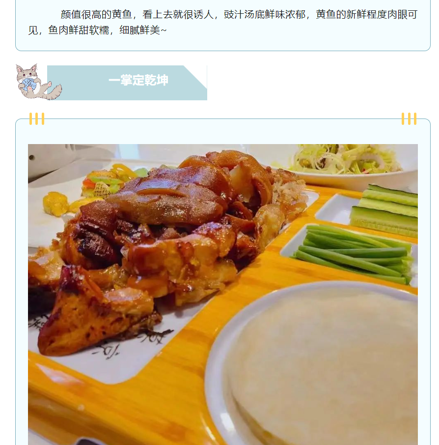 “一掌定乾坤”听名字就很霸气,用炖熊掌的古法来炖牛蹄紧接着微醺,再用春饼加上配菜配料卷着一口下去,满满的胶原蛋白!河北沧州泰合卓凡雅阁酒店(雅阁酒店集团旗下成员酒店)诚邀您来品尝美食啦~~