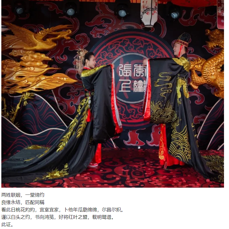 谨以白头之约,书向鸿笺,好将红叶之盟,载明鸳谱。