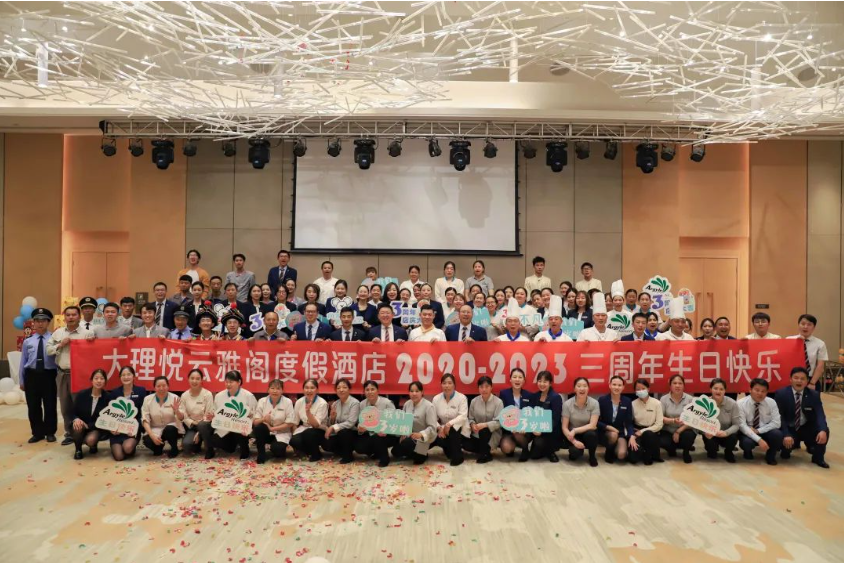 2020年7月1号,大理悦云雅阁度假酒店(雅阁酒店集团旗下成员酒店)正式开业。三年时间里,悦云团队所有伙伴勠力同行,经受了疫情三年重重考验,创造了经营 “奇迹”,顺利开业,并且屡创佳绩,牢牢在大理生根。今天是大理悦云雅阁度假酒店3周年生日,酒店举行了隆重的店庆活动,悦云家人们齐聚一堂,在总结往昔的同时,相互激励打气,力争再创辉煌,在丰富多彩的员工活动中,大家喜笑欢颜,共同祝福庆生。