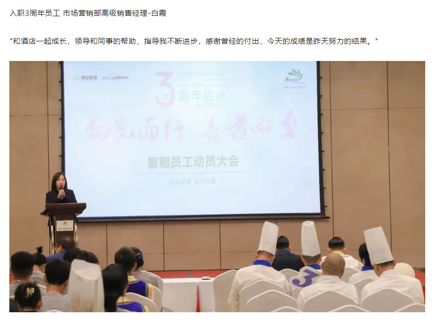 大理悦云雅阁度假酒店(雅阁酒店集团旗下成员酒店)3周年店庆活动暨暑期动员大会圆满举行。