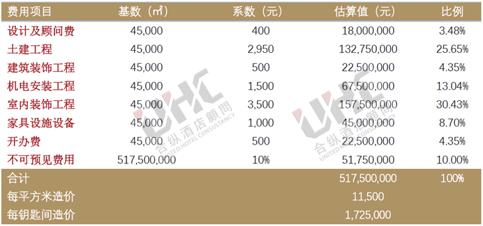并且,实际的建设成本预估涉及诸多复杂的因素,包括酒店的地理位置、规模、功能设置、建筑形态、设计风格等。例如,一座拥有300间客房的酒店与拥有500间客房的同品牌酒店的单位造价可能存在明显差异。类似地,拥有不同规模宴会厅的酒店,以及位于市中心和郊区的酒店,其单位造价也会有所不同。