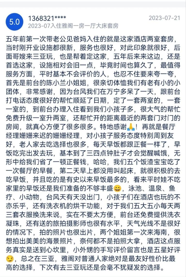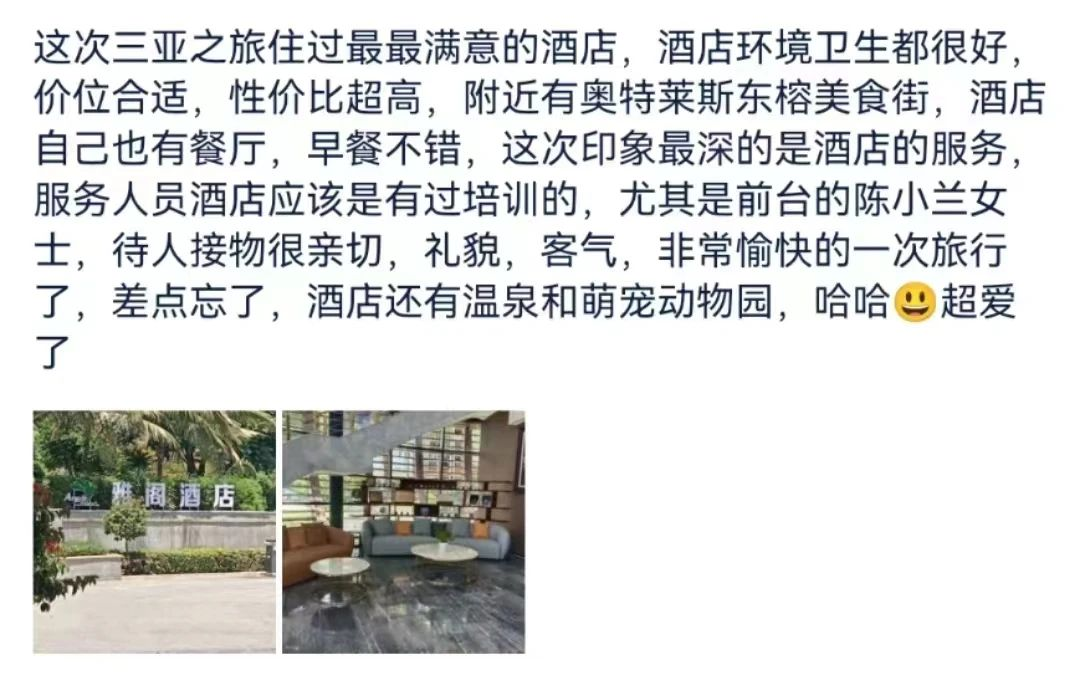 语短情深,每一个好评都是对我们酒店员工的喜爱、认可及信任