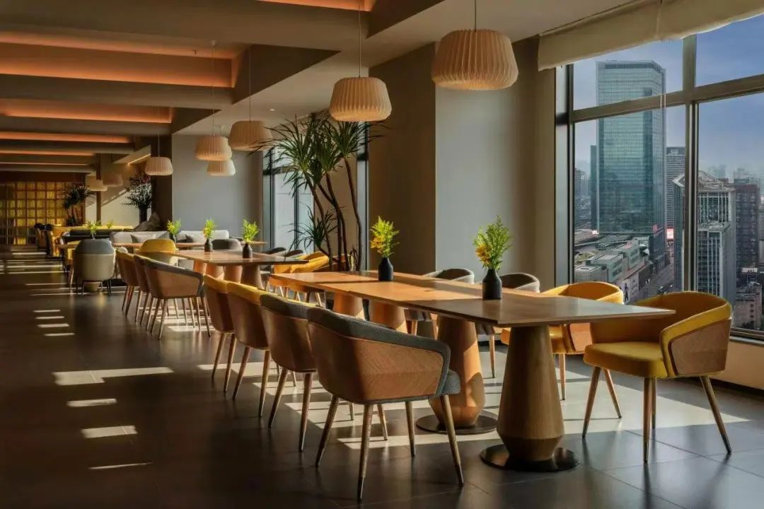 作为公区体验的两个核心部分,会聚点Meeting Point,摒弃传统柜台式前台,以干练整体的柜组取而代之,如机场和综合体的meeting point;好趣空间Go-to Place,颠覆了传统全日餐厅的运营理念,创意集结美食、社交、移动办公、户外庭院生活等复合体验,是Pagoda场景生活的延展空间。两个空间,通过有效的创意组合与设计,不仅为客人带来了舒适自在的多元有趣体验空间,而且还让酒店公区员工,通过走动式服务高效组织起来,为客人提供包括前台Check-in/out、餐饮及其他即时服务。