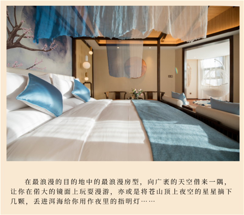 在大理星月湾雅阁璞邸酒店(雅阁酒店集团旗下成员酒店)浪漫的目的地中的浪漫房型,向广袤的天空借来一隅,让你在偌大的镜面上玩耍漫游,亦或是将苍山顶上夜空的星星摘下几颗,丢进洱海给你用作夜里的指明灯……