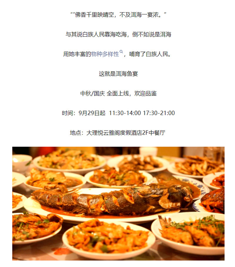 大理悦云雅阁度假酒店(雅阁酒店集团旗下成员酒店)中秋/国庆活动温馨预告